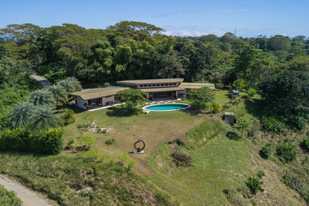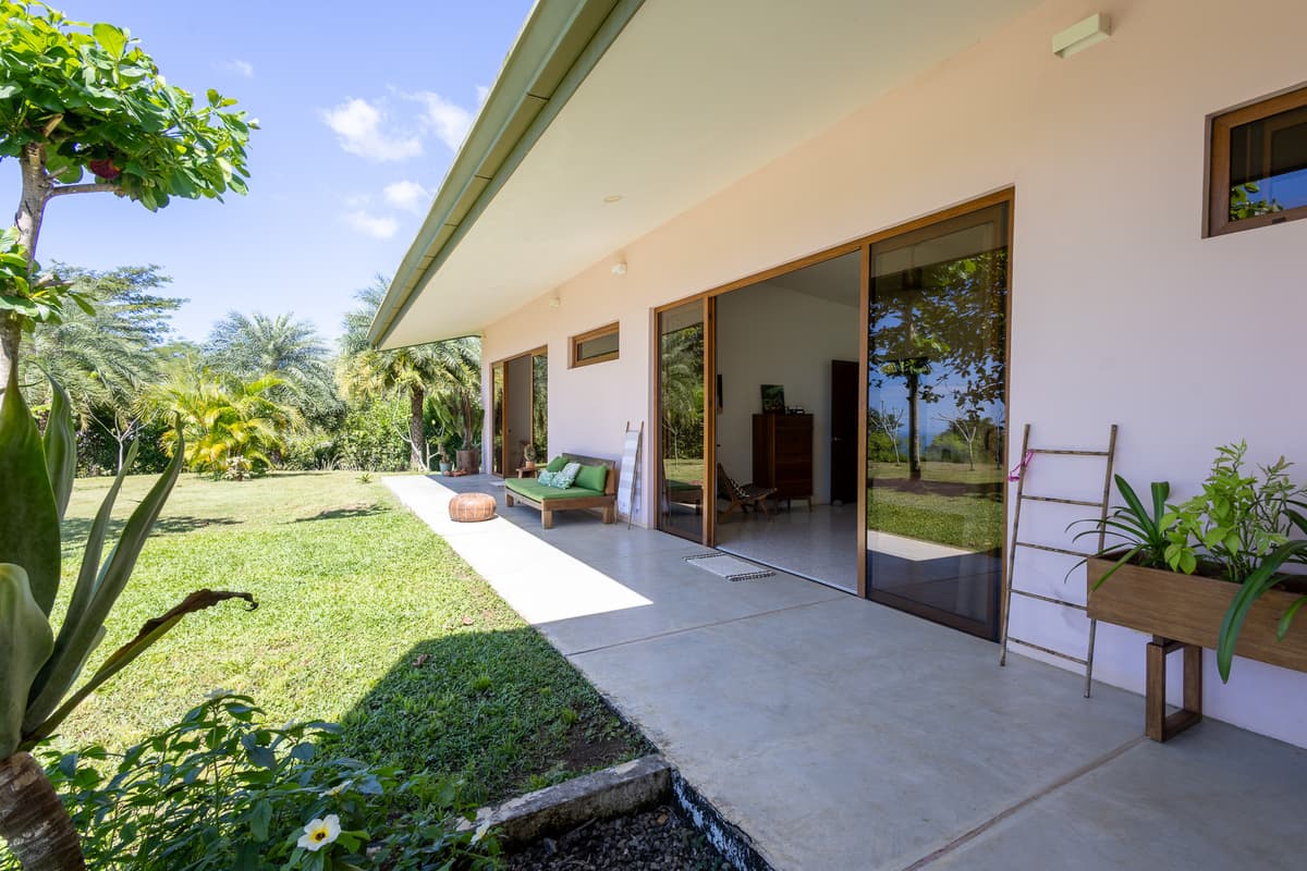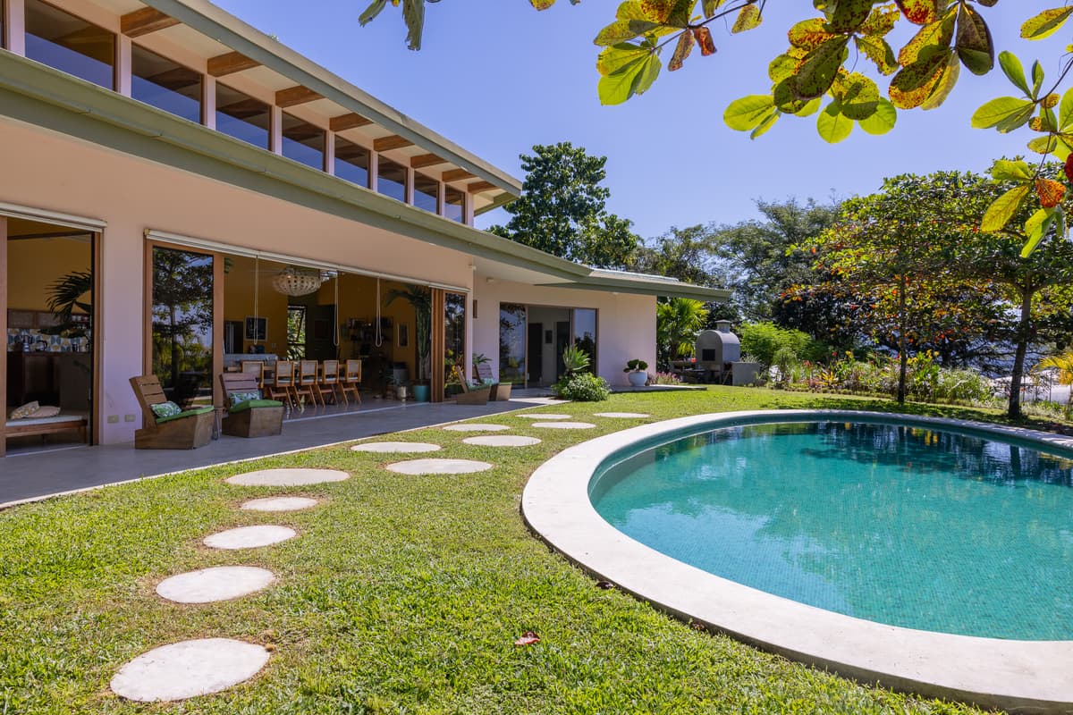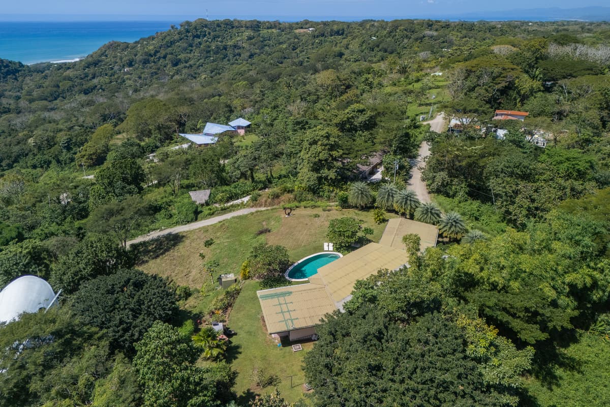 Upon entering the home, there is a large open kitchen and great room with an island bar perfect for entertaining guests. Off the front of the kitchen is the spacious deck and beautiful swimming pool with a gorgeous view of the Pacific Ocean. All bedrooms have en- suite bathrooms and sea views. The master bedroom is spacious, including a walk in closet with vanity table and mirror. There is the possibility of easily making a fourth bedroom with a jack and jill bathroom for a larger family. The entrance to the home is beautifully landscaped and the gardens have plenty of fruit trees and gorgeous tropical flowers. The main door was custom-made with hardwoods from Costa Rica and stain glassed inserts. The front yard with its soft Bermuda grass and wood burning fire oven gives ample room for outdoor entertaining and watching amazing sunsets. Just below the house is another building platform with its’ own private entrance, which would be great for a guest home or vacation rental. Great opportunity in an amazing area with privacy, jungle, views and delightful ocean breezes. Inquire within to schedule your showing.