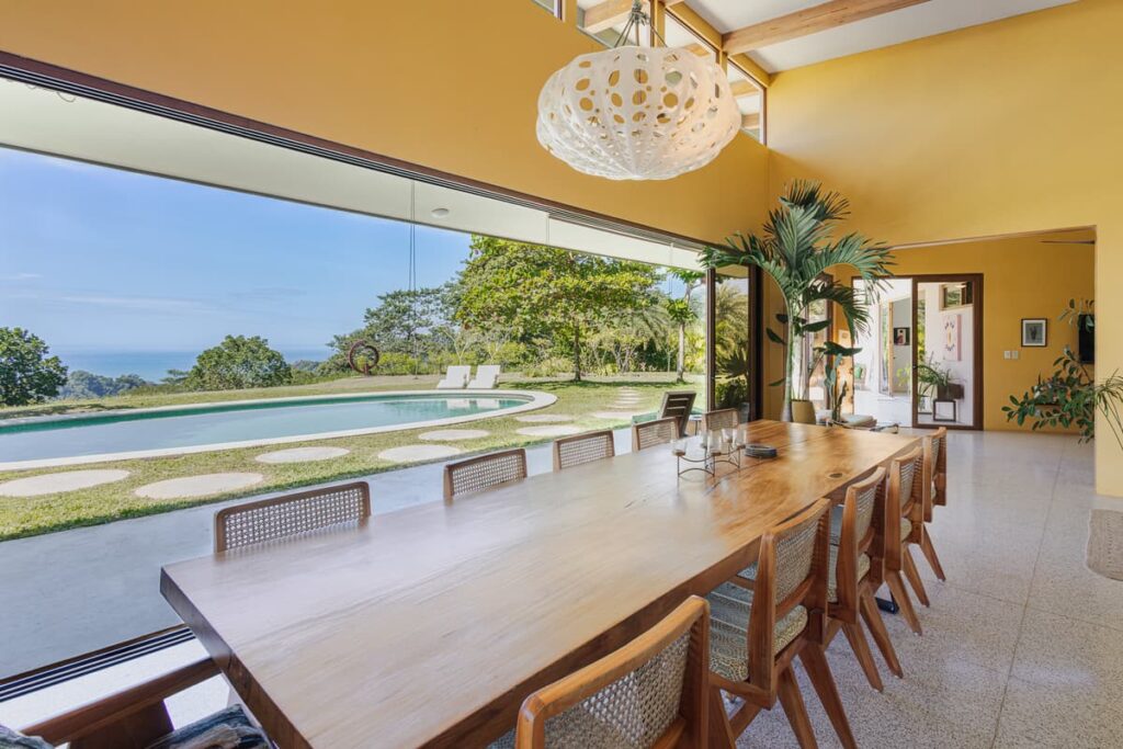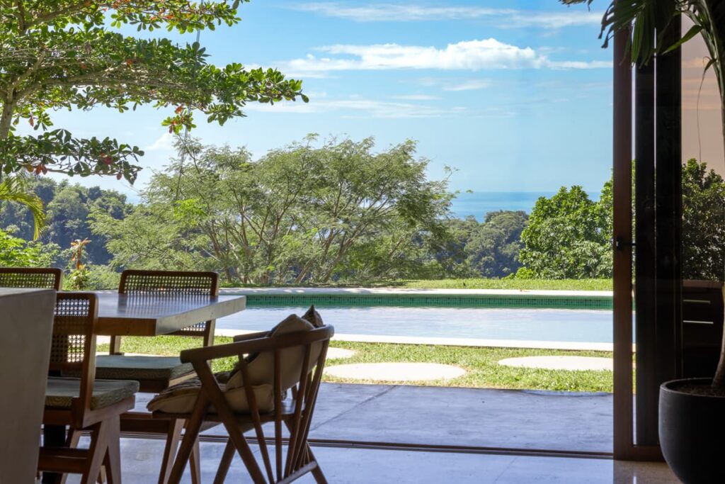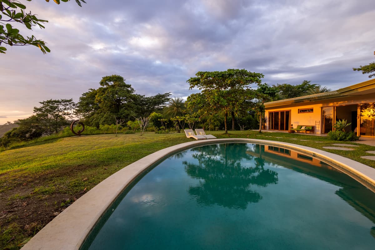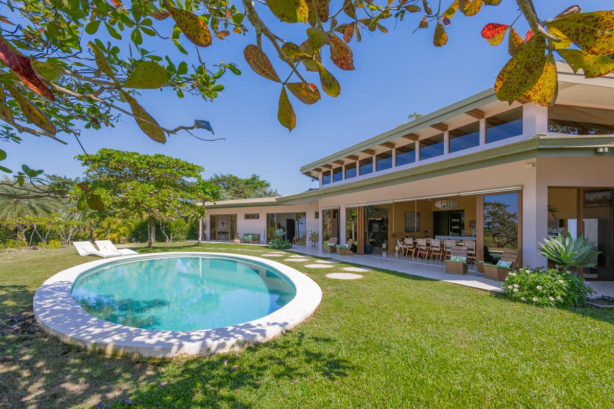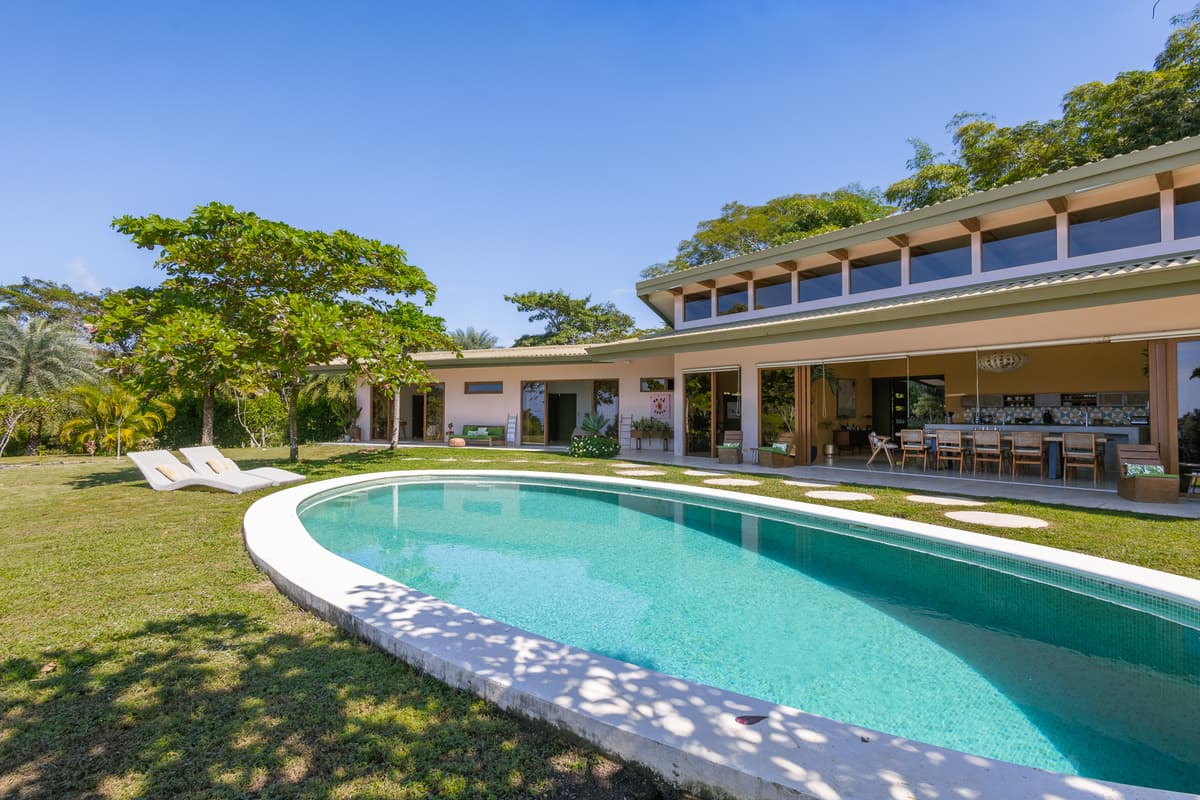 Upon entering the home, there is a large open kitchen and great room with an island bar perfect for entertaining guests. Off the front of the kitchen is the spacious deck and beautiful swimming pool with a gorgeous view of the Pacific Ocean. All bedrooms have en- suite bathrooms and sea views. The master bedroom is spacious, including a walk in closet with vanity table and mirror. There is the possibility of easily making a fourth bedroom with a jack and jill bathroom for a larger family. The entrance to the home is beautifully landscaped and the gardens have plenty of fruit trees and gorgeous tropical flowers. The main door was custom-made with hardwoods from Costa Rica and stain glassed inserts. The front yard with its soft Bermuda grass and wood burning fire oven gives ample room for outdoor entertaining and watching amazing sunsets. Just below the house is another building platform with its’ own private entrance, which would be great for a guest home or vacation rental. Great opportunity in an amazing area with privacy, jungle, views and delightful ocean breezes. Inquire within to schedule your showing.