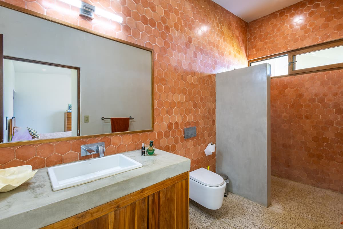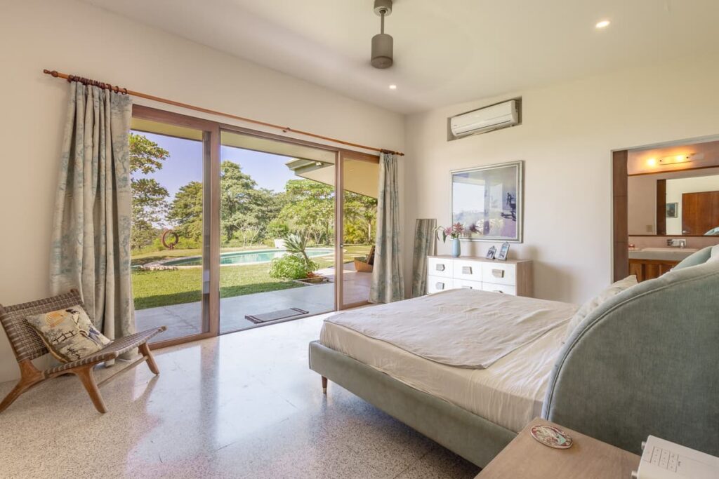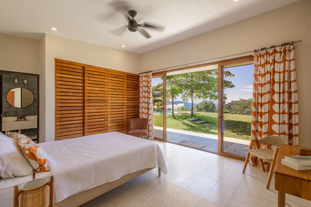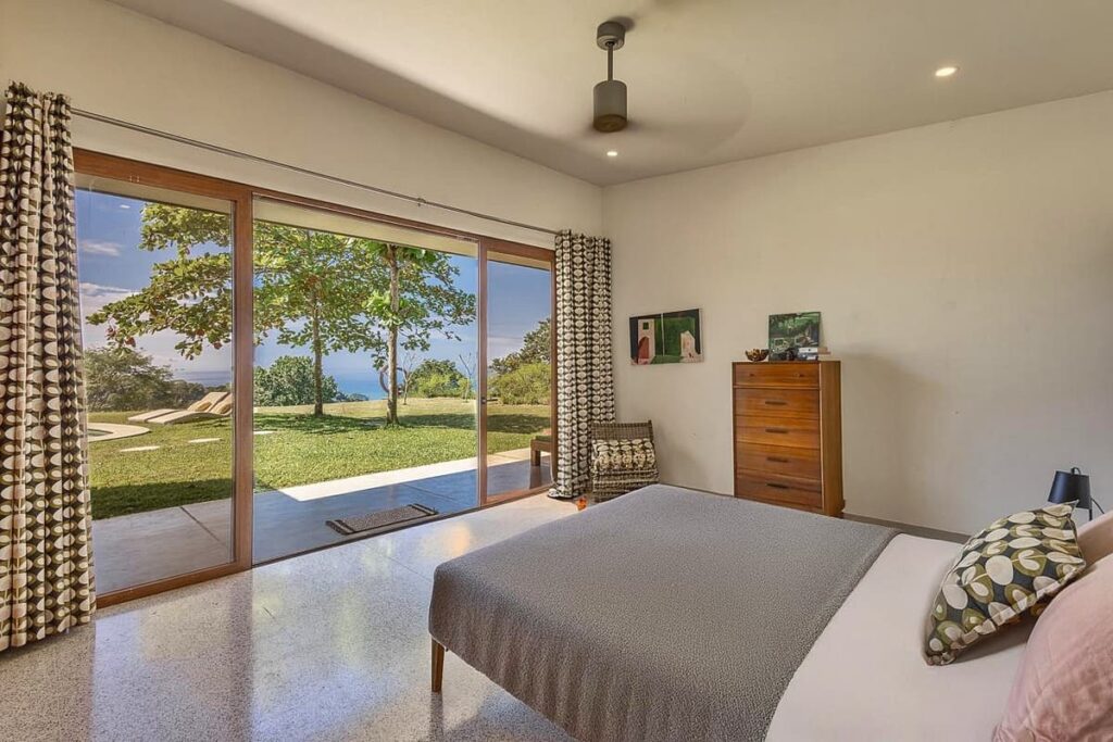 Less than a ten minute drive from the famous surf beaches of Santa Teresa is this fabulous ocean view three bedroom three and half bathroom luxury home. The views here are amazing, including ocean views from Montezuma, Mal Pais, and Playa Carmen. The property is tucked inside a gated community with two separate gated entrances allowing for easy and quick access to Santa Teresa, Mal Pais and Montezuma. There is 24 hour security guard on the premises that monitors the incoming and outgoing traffic. Living here gives the best of both worlds as inside the community there is peaceful living, privacy, security, and tranquility, yet if looking for shopping, restaurants, and nightlife you are only a short 5 minute drive to the hustle and bustle of Santa Teresa.
