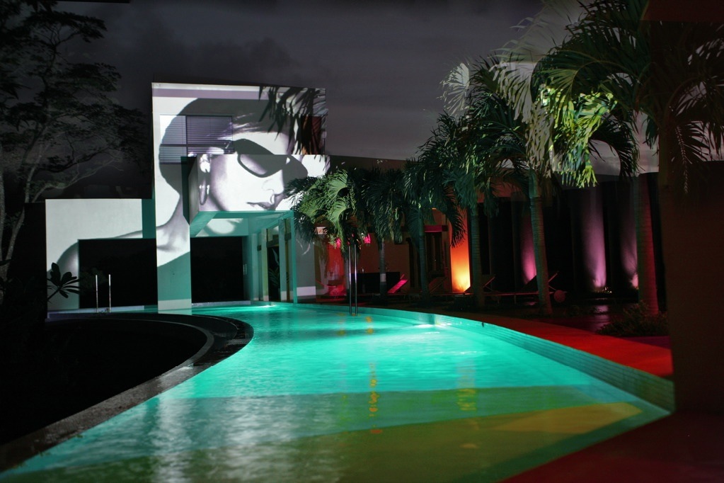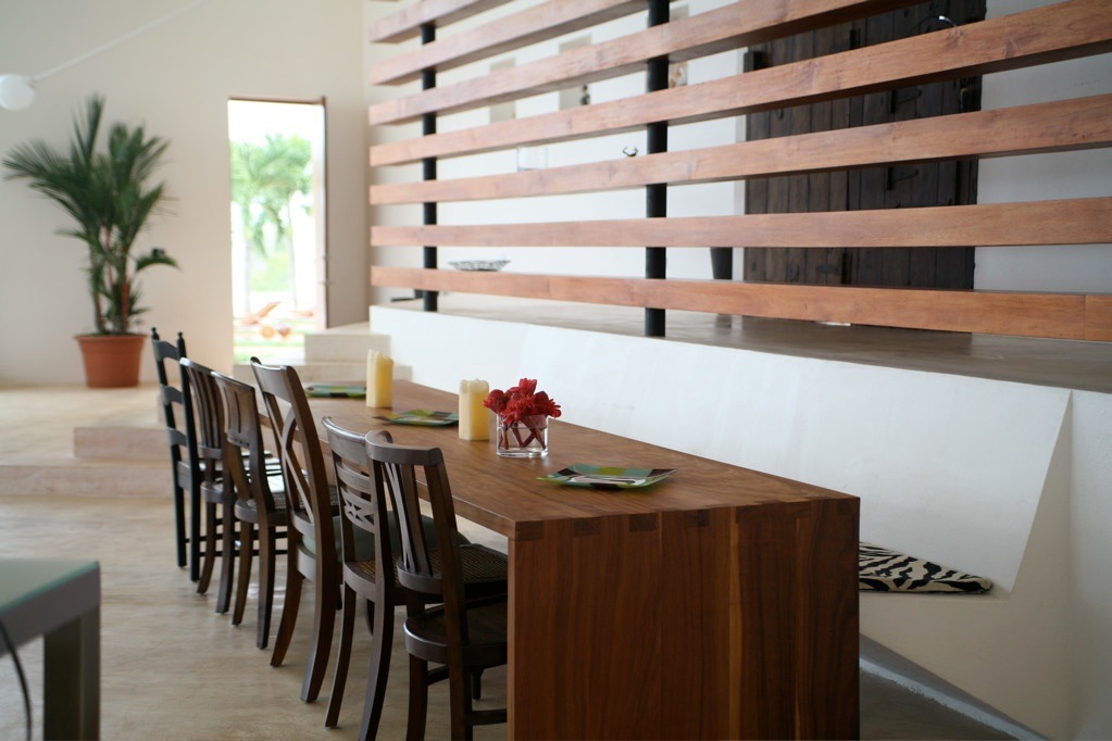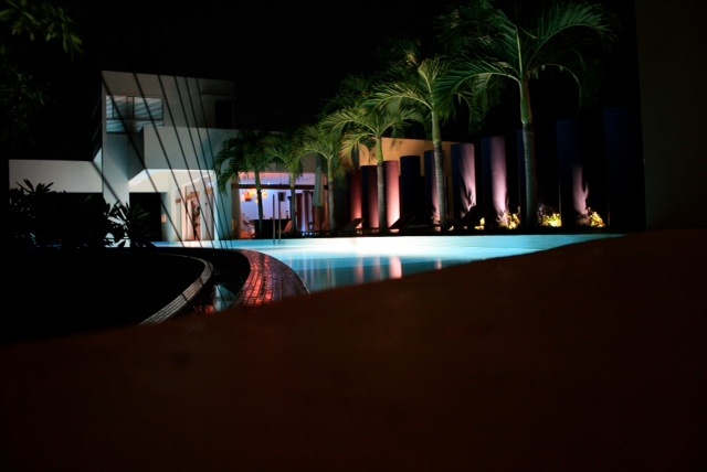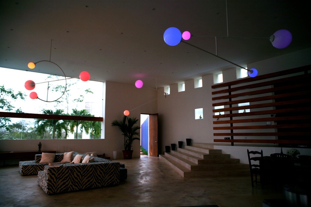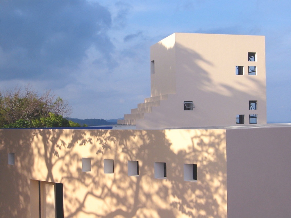 Total measurements of all constructions include: Casa A: 375 m2 or 4,000 ft2 inside space with 180 m2 (1900 ft2) of private decks. Casa B is a 120 m2 (1290 ft2) house and the shared pool deck in between the two houses measures 80 m2 or 860 ft2. Pool size is 130 m2 (or 1400 ft2). The studio at the entrance is comprised of two stories and measures 50 m2. This studio contains a bed loft, living room, kitchen and bathroom.