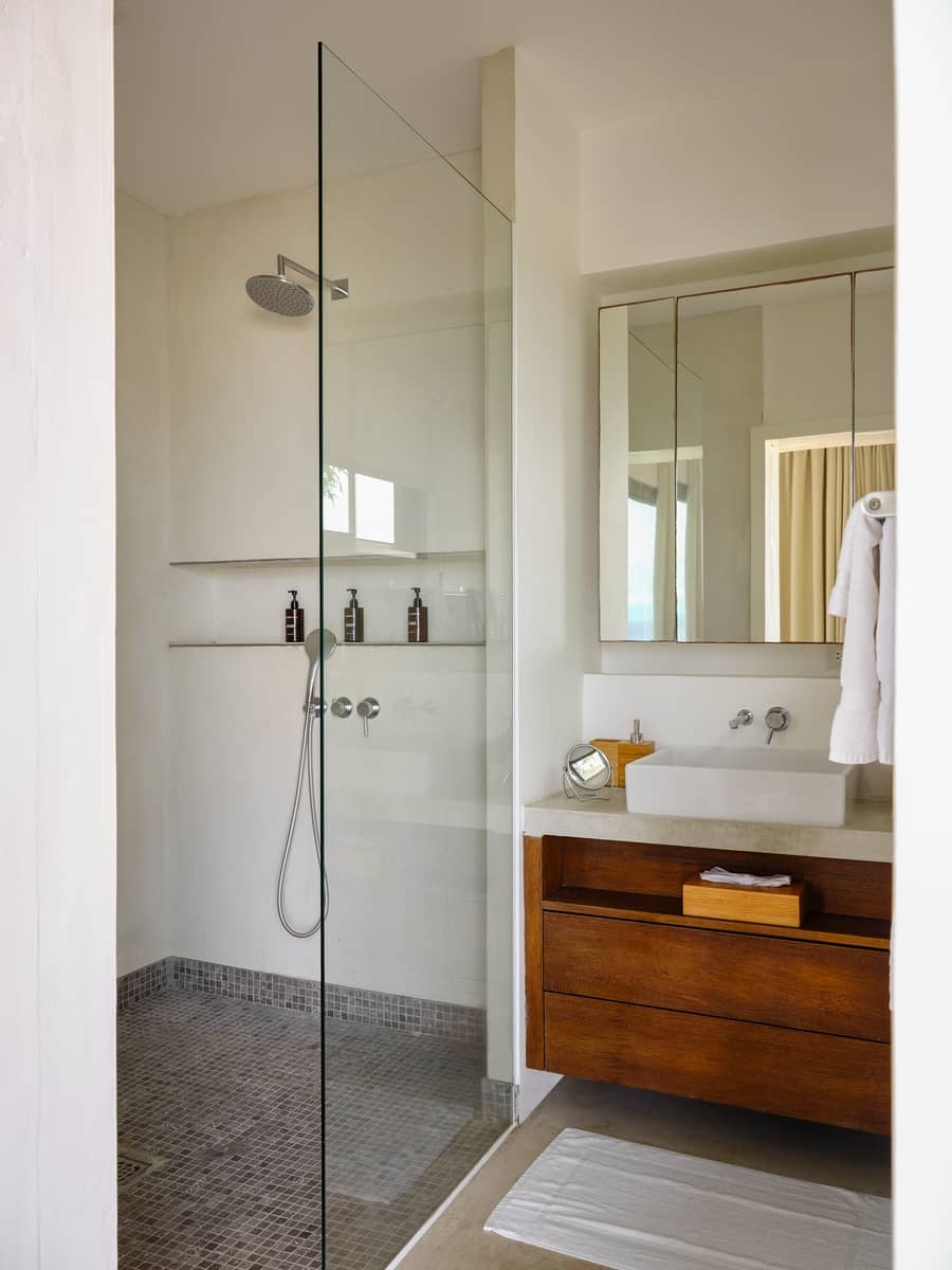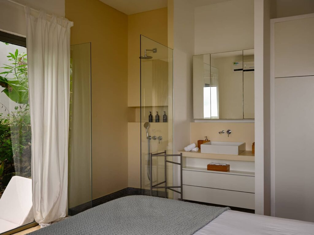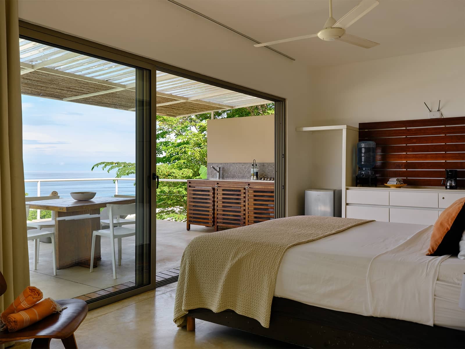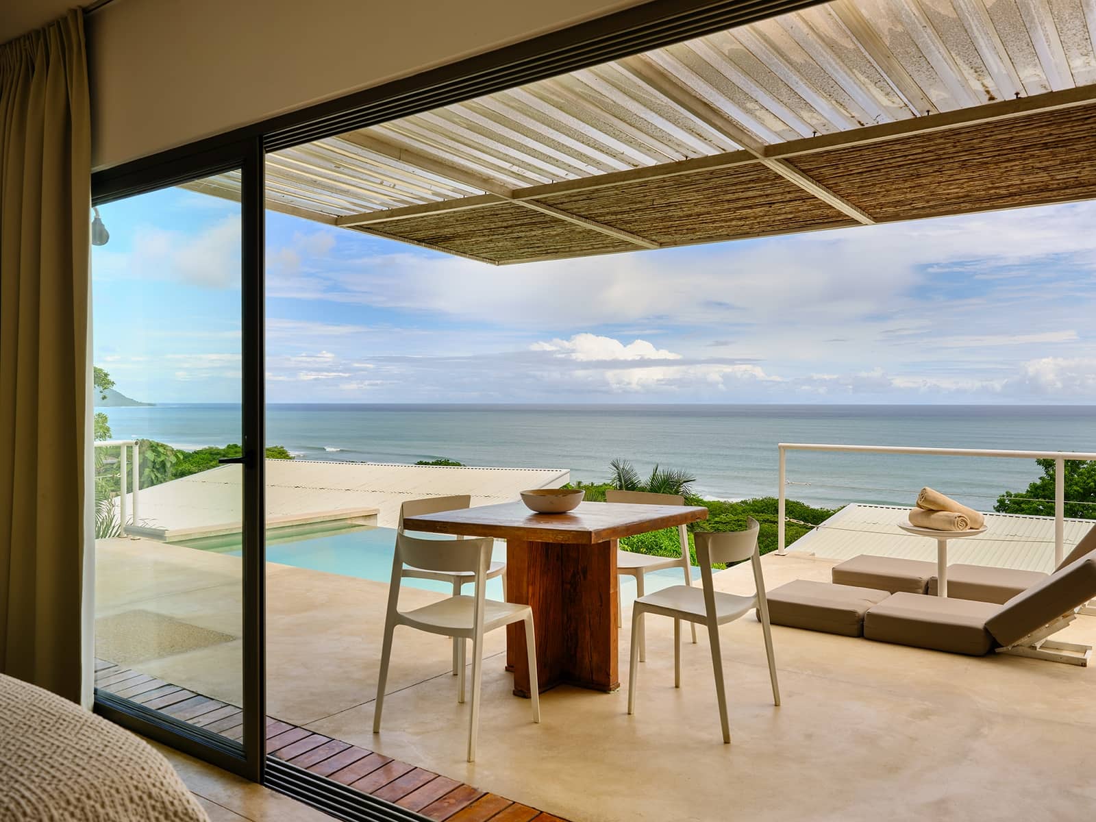 The upper level features an open, light-filled bedroom suite with a private pool, ocean views, and an outdoor kitchenette — perfect for enjoying morning coffee or sunset dinners overlooking the waves. The lower level includes a second bedroom with its own private bathroom, ideal for guests or for additional privacy. Both levels have their own separate and private entrances.