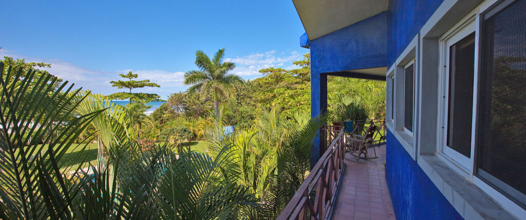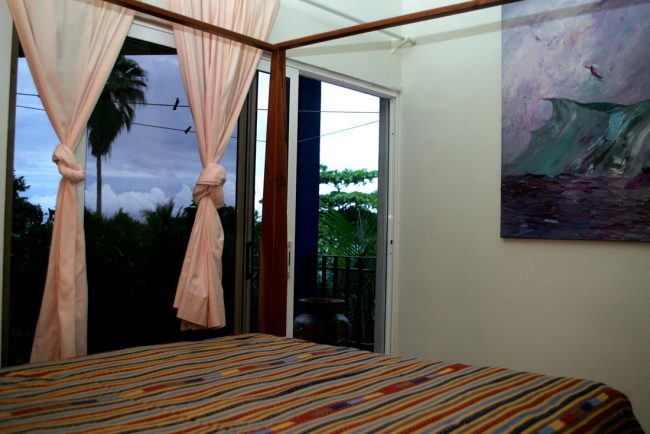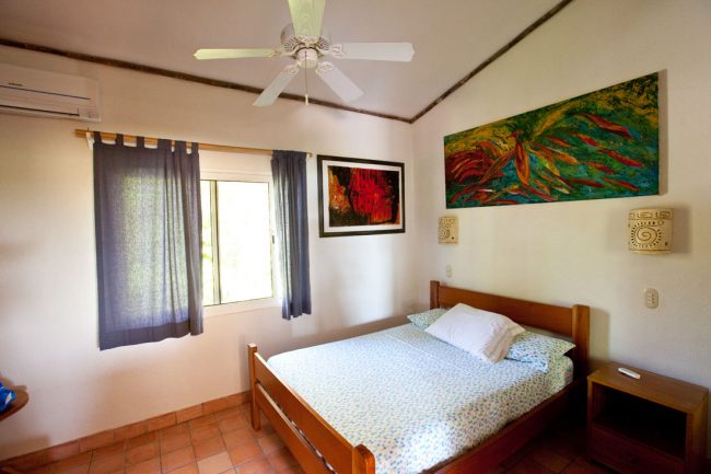 Each upstairs bedroom has a queen sized bed, its own central AC unit, a ceiling fan as well as natural ventilation. One bedroom faces out to the ocean. This room has a private balcony accessed through a sliding glass door.