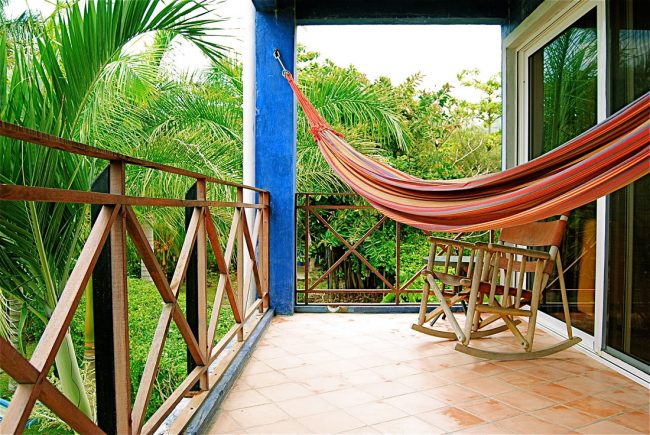 From each of these 3 bedrooms, a sliding glass door leads to a private patio furnished with a hammock, table and chairs.