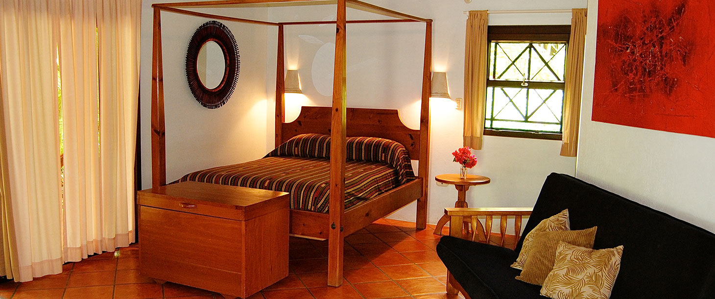 Upstairs is a large 2 bedroom Suite with an area size of 2,000 sq. ft. The suite overlooks the pool and beach.